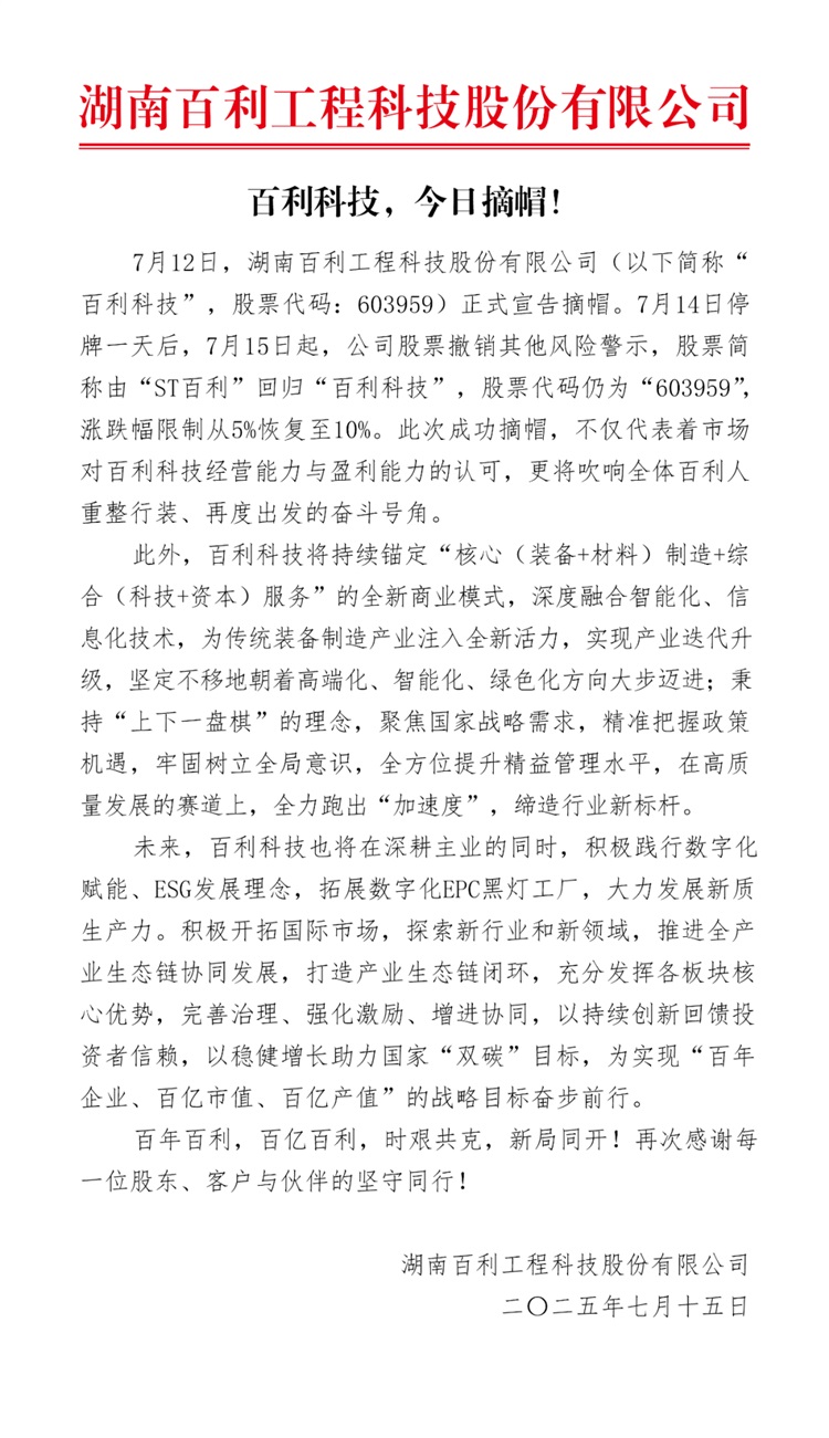 百利科技,順利摘帽!