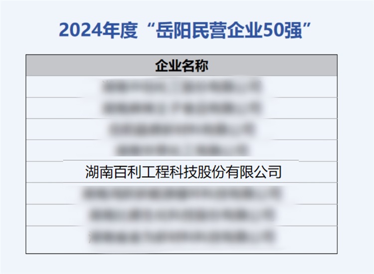 近日,岳陽(yáng)市工商業(yè)聯(lián)合會(huì)公示2024年度“岳陽(yáng)民營(yíng)企業(yè)50強(qiáng)”名單。百利科技憑借其深厚的產(chǎn)業(yè)積淀與綜合實(shí)力榮譽(yù)上榜。